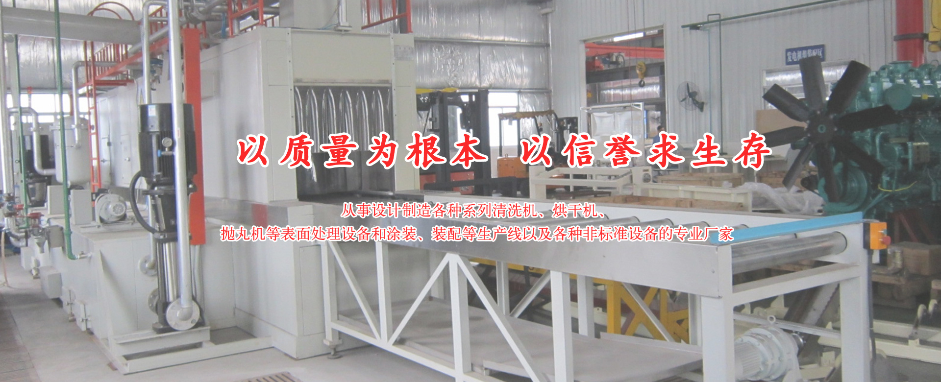 從事設(shè)計(jì)制造各種系列清洗機(jī)、烘干機(jī)、拋丸機(jī)等表面處理設(shè)備和涂裝、裝配等生產(chǎn)線以及各種非標(biāo)準(zhǔn)設(shè)備的專(zhuān)業(yè)廠家。